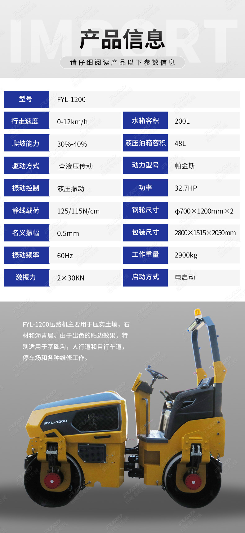 FYL-1200  新款3噸全液壓振動座駕壓路機