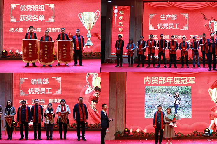 三、頒獎(jiǎng)環(huán)節(jié)。年會(huì)也是我們的表彰大會(huì),班組、團(tuán)隊(duì)、個(gè)人,在這里他們大放光彩。