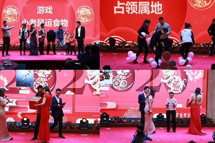 四、游戲、抽取獎(jiǎng)品環(huán)節(jié)展示。年會(huì)當(dāng)然少不了游戲、抽取大獎(jiǎng)環(huán)節(jié)了,精心安排的互動(dòng)游戲,大大地調(diào)動(dòng)了員工們的熱情,臺(tái)下一片歡聲笑語,昔日的汗水都化為杯中的美酒,大家舉杯共飲。抽取大獎(jiǎng)是激動(dòng)人心的,看著拿大獎(jiǎng)的同事心中充滿了羨慕。