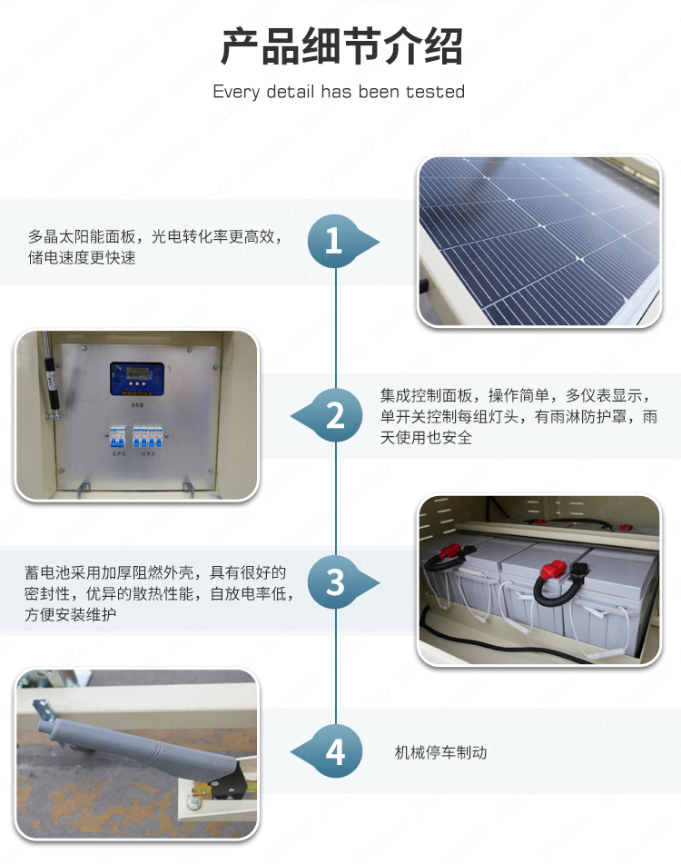 我們開(kāi)發(fā)了一種新產(chǎn)品,叫做太陽(yáng)能光塔,它的設(shè)計(jì)理念是節(jié)能環(huán)保。它可以長(zhǎng)時(shí)間部署在偏遠(yuǎn)地區(qū),并由太陽(yáng)能自行供電。它通過(guò)可調(diào)節(jié)的太陽(yáng)能電池板自動(dòng)充電,運(yùn)行干凈,安靜,高效。